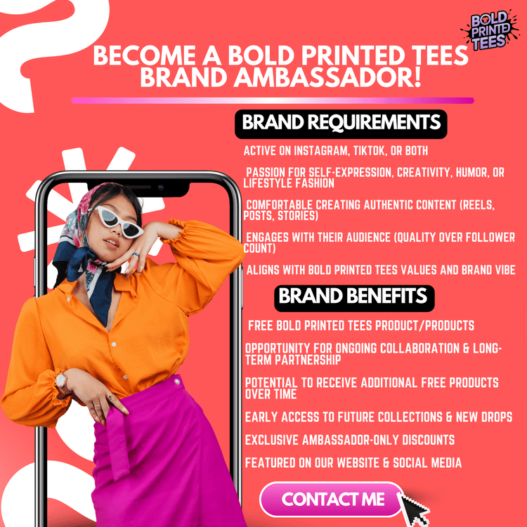 Bold Printed Tees is looking for a small group of passionate, creative individuals to help represent our brand.